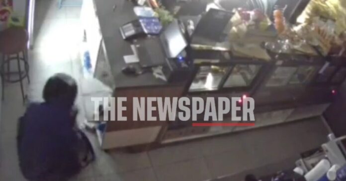 Στο βίντεο που παρουσιάζει το thenewspaper καταγράφεται καρέ καρέ ο ληστής μπαίνει στην καφετέρια στον Βόλο με χαρακτηριστική άνεση, αδιαφορώντας για το κλειστό κύκλωμα τηλεόρασης.