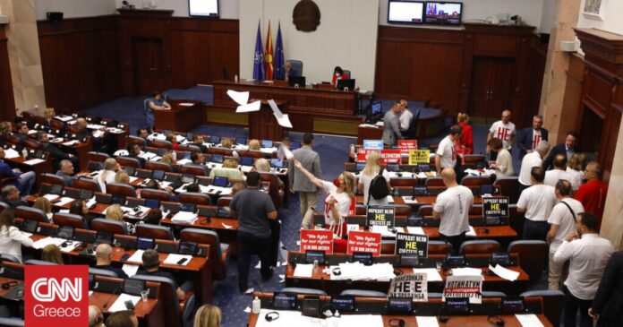 Οι βουλευτές του δεξιού αντιπολιτευόμενου κόμματος VMRO-DPMNE, που αντιτίθεται στην πρόταση και στο συμβιβασμό με τη Βουλγαρία απείχαν από την ψηφοφορία.