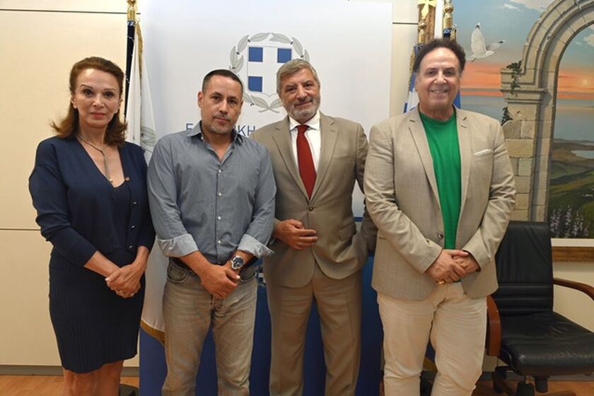 Από αριστερά: Μαίρη Βιδάλη, πρώην Αντιπεριφερειάρχης Πολιτισμού, Κωνσταντίνος Μαλεβίτσης, ο Περιφερειάρχης Γιώργος Πατούλης, Χάρης Ρώμας, Αντιπεριφερειάρχης Πολιτισμού