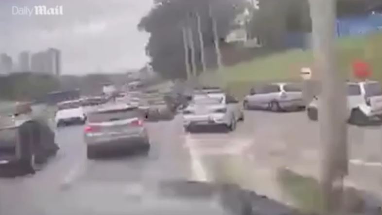 Τρελή κούρσα λεωφορείου σκόρπισε τον τρόμο και τον πανικό στους επιβάτες σε αυτοκινητόδρομο της Σάο Πάολο της Βραζιλίας.