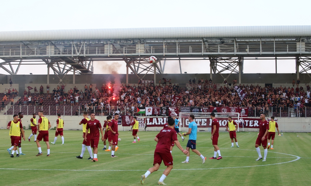 Οι οπαδοί της ΑΕΛ πήραν θέση στο γήπεδο και αποθέωσαν τους παίκτες της ΑΕΛ την ώρα που πραγματοποιούσαν το πρόγραμμά τους, ενώ έγιναν όλοι μία «γροθιά» και τραγουδούσαν όμορφα συνθήματα.