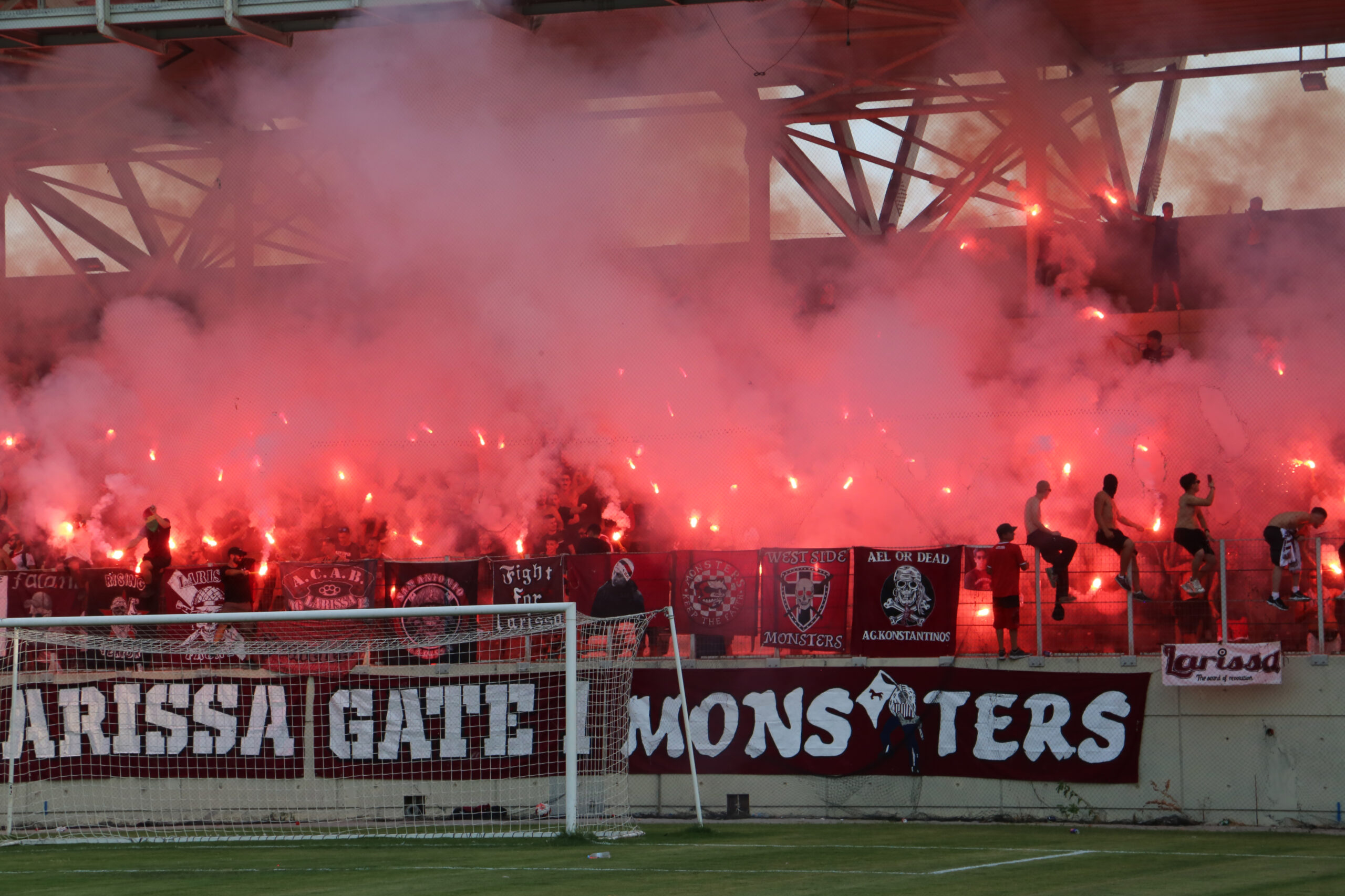Οι οπαδοί της ΑΕΛ πήραν θέση στο γήπεδο και αποθέωσαν τους παίκτες της ΑΕΛ την ώρα που πραγματοποιούσαν το πρόγραμμά τους, ενώ έγιναν όλοι μία «γροθιά» και τραγουδούσαν όμορφα συνθήματα.