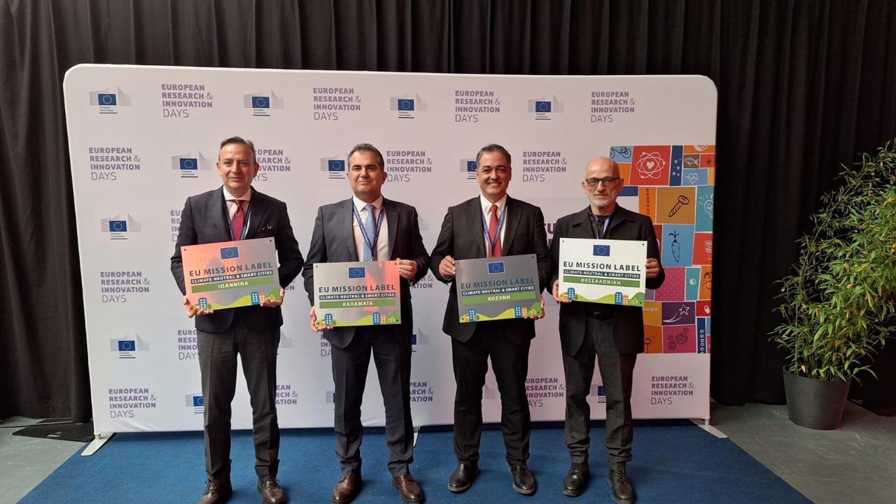 Σε τέσσερις ελληνικές πόλεις απονεμήθηκε το “EU Mission Label”από την ΕΕ, μια πιστοποίηση, η οποία αναγνωρίζει τις πρωτοβουλίες που λαμβάνονται στο πλαίσιο της Αποστολής της ΕΕ για τις «100 Κλιματικά Ουδέτερες και Έξυπνες πόλεις μέχρι το 2030, από και προς τον πολίτη». Ο λόγος για τις Θεσσαλονίκη, Καλαμάτα, Κοζάνη και Ιωάννινα, οι οποίες έλαβαν αυτή τη σημαντική διάκριση κατά την τελετή «Ημέρες Έρευνας και Καινοτομίας της ΕΕ».