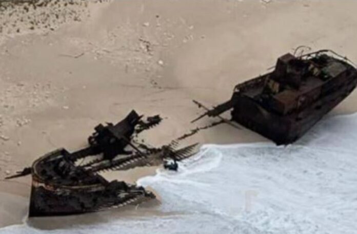 Όπως φαίνεται πλέον σε φωτογραφίες που ήρθαν πρόσφατα στο φως, είναι ορατές μόνο η πρύμνη και η πλώρη του «Παναγιώτη», με την εικόνα να μη θυμίζει σε τίποτα το πολυφωτογραφημένο αξιοθέατο που αποτελεί πόλο έλξης για χιλιάδες τουρίστες κάθε χρόνο.