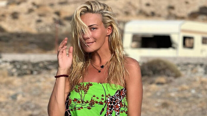 Η ηθοποιός και παρουσιάστρια, που είναι αρκετά ενεργή στα social media, δημοσίευσε μερικές νέες φωτογραφίες της, στις οποίες ποζάρει φορώντας ένα καλοκαιρινό, πράσινο φόρεμα, μπροστά από ένα νησιωτικό τοπίο, στο βάθος του οποίου διαφαίνεται ένα τροχόσπιτο.